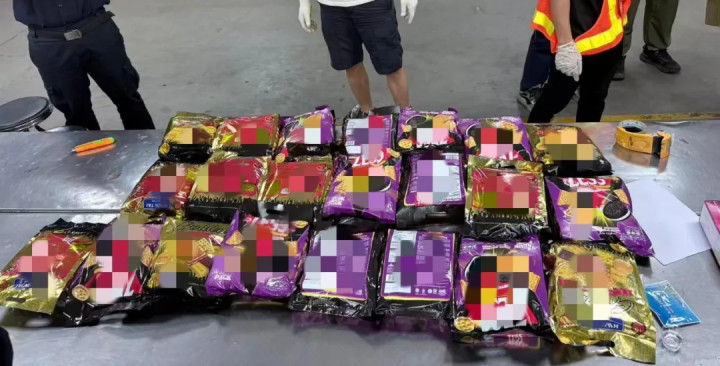 广州海关所属广州白云机场海关关员在对一批转运快件进行监管时,发现一票申报为“包装干果”的快件机检图像异常。海关关员立即进行拦截并进一步查验,发现包裹内有数十包“零食”。其中,部分“零食”的外包装存在重新封装的痕迹。打开“零食”包装袋后,发现内部有用透明包装袋封装的褐色植物,散发出刺鼻气味。经送技术机构鉴定,确认上述植物为毒品大麻,重8783克。